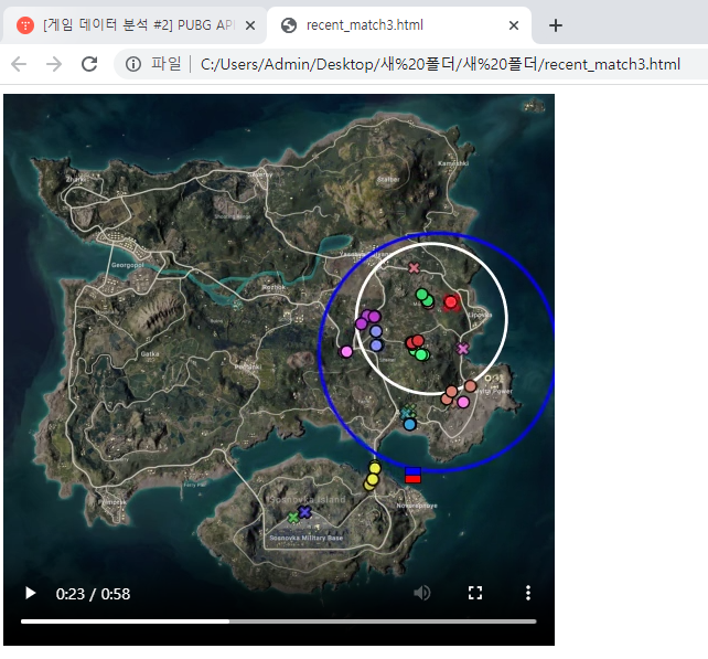 위의 코드에 user_name을 입력하게 되면 아래와 같이 html안에 리플레이 영상이 재생됩니다.