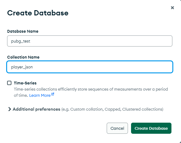 Database Name과 Collection name를 작성해줍니다.